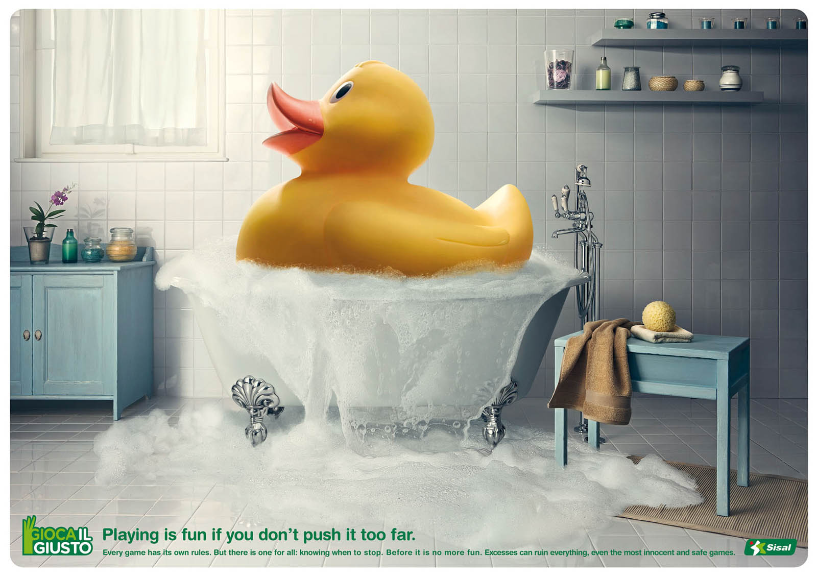 Sisal, la empresa que tiene las concesiones de los juegos de azar en Italia ha lanzado una campaña para advertir sobre su abuso. Bajo el eslogan «Jugar es divertido si no lo llevas muy lejos», advierte que cada juego tiene sus propias reglas, pero una es universal: saber cuando parar.